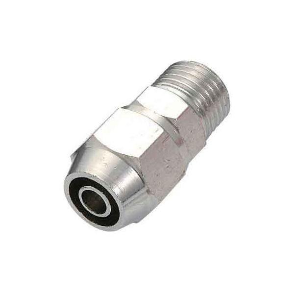 【用途】エアー配管継手(ウレタンホースジョイント)。【機能・特徴】ウレタンホースと機器の接続に適したジョイントです。ホースへの取り付けはニップルに差し込みナットを締めるだけです。【仕様】●接続ねじ:おねじR1/4(PT1/4)。●適用流体:空気。●最高使用圧力:1.5MPa。●常用圧力:1.0Mpa。●接続ウレタンホース:内径6.5mm・外径10.0mm。●クロームメッキ。●真鍮。電動工具 エアーツール 配管継ぎ手ねじ