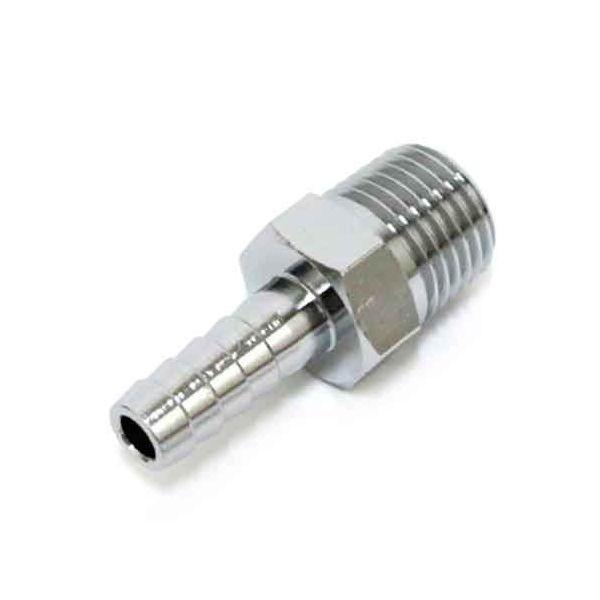 【用途】エアー配管継手(片口ニップル)。【機能・特徴】ウレタンホースと機器の接続に適しています。【仕様】●接続ねじ:おねじR(PT)1/4。●接続ウレタンホース:内径6.5mm。●ホース口:7mm。●適用流体:空気。●最高使用圧力:1.5MPa。●常用圧力:1.0Mpa。●クロームメッキ。●真鍮。電動工具 エアーツール 配管継ぎ手ねじ