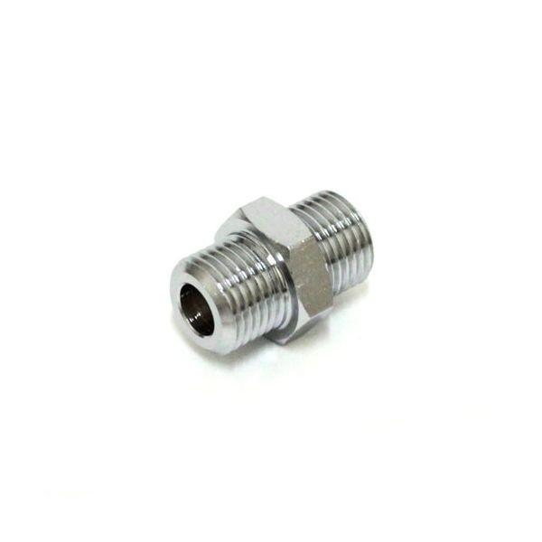 【用途】エアー配管継手(中間同径ニップル)。【機能・特徴】同径のホース・管及び機器を同方向に接続します。【仕様】●接続ねじ(両側):おねじG(PF)1/8。●適用流体:空気。●最高使用圧力:1.5MPa。●常用圧力:1.0Mpa。●クロームメッキ。●真鍮。電動工具 エアーツール 配管継ぎ手ねじ