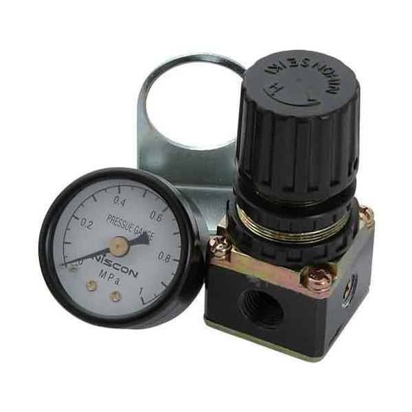 【用途】減圧弁。【機能・特徴】ピストンタイプの減圧弁で、安定した圧力特製流量特性が得られ、又、二次側圧力の変動に対する、うなりを無くしました。小型サイズで取付けスペースを削減・軽量化しました。【仕様】●呼び口径:8A。●管接続口:PT1/4。●一次側圧力:9.9kgf/cm2G以下。●設定圧力範囲:0.5~8.5kgf/cm2G。●耐圧力:15kgf/cm2G。●適用流体:空気。●付属品:圧力計・ブラケット。電動工具 エアーツール 圧力計機器