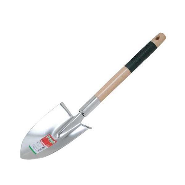 【用途】スコップ。【機能・特徴】穴掘り、土すくい用です。土への差し込みに便利な足踏み付きです。植替え作業などに便利な目盛付きです。【仕様】●刃先プレス加工。●目盛付。●ハードクロームメッキ処理。【注意事項ほか】本来の用途以外には使用しないで下さい。使用前には本体あるいは部品にがたつき・緩みが無いことを確認してください。園芸道具 移植コテ スコップ