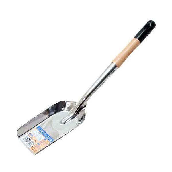 【用途】石炭や木炭の後始末、溝の清掃等。【機能・特徴】溝掃除・炭の後片づけ用です。錆びにくいステンレス製です。【仕様】●本体サイズ:約80×160×450mm。●頭部:ステンレス。●柄部:木。【注意事項ほか】本来の用途以外には使用しないで下さい。使用前には本体あるいは部品にがたつき・緩みが無いことを確認してください。使用の際には保護めがね・手袋などを着用してください。園芸道具 清掃具 十能