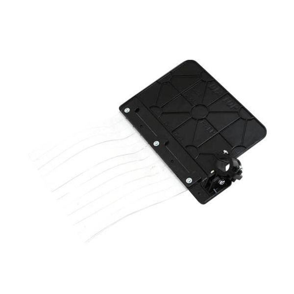 【用途】刈払保護具。【機能・特徴】地面との接触はやわらかいすだれ状のシートになっているため、地面の形状にならい障害物(石・切り株など)が邪魔になることもありません。草刈機のサオより上側にもプレート面があるため、腰から上への飛散物も効果的にブロックします。【仕様】●刈払機用。園芸機器 刈払機 刈払補助具