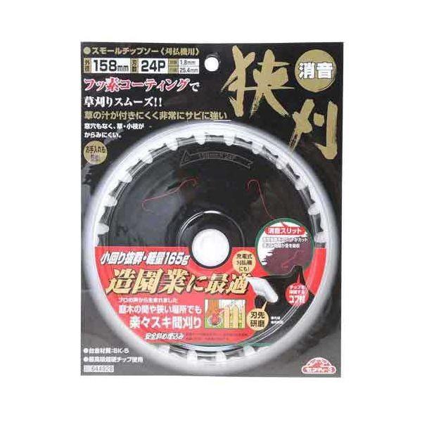 【用途】草刈り。【機能・特徴】雑草刈り、造園業に最適です。草の汁が付きにくく非常に錆びにくいです。消音スリットが入っていて、衝撃振動をカット、埋込み樹脂が音をカットします。庭木の間や狭い場所でも楽にすき間刈りができます。超硬チップが最も飛び出にくい斜め埋め込みを採用しているので、衝撃にも強く、作業者に安全です。【仕様】●外径:158mm。●刃厚:1.8mm。●穴径:25.4mm。●刃数:24。●充電刈払機にもおすすめ。●斜め埋め込み。●台金:SKS-5。園芸機器 刈払機 草刈チップソー
