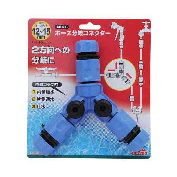 【用途】散水パーツ。【機能・特徴】ホース分岐コネクターです。2方向への分岐ができます。中間コック付きで、両側通水、片側通水、止水が可能です。【仕様】●適合ホース内径:12~15mm。●適合ホース外径:20mmまで。●ABS樹脂・PP(ポリプロピレン)。【注意事項ほか】水以外の使用はしないでください。使用後、水道の蛇口は必ず締めて止水してください。直射日光の当たらない場所で保管してください。園芸用品 散水用品 散水パーツ