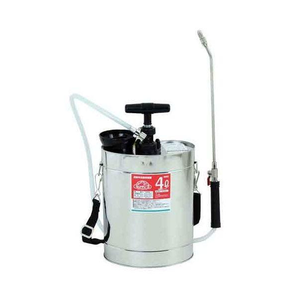 【用途】噴霧作業。【機能・特徴】庭木の殺虫・消毒に最適です。軽くてさびにくいステンレスタンクです。ボールコックのため液漏れしにくいです。レバーコックの操作でタンク内の液体を連続噴霧できます。【仕様】●タンク容量:4L。●樹脂ポンプ・重量:900g。●ノズル長さ:35.5cm。●常用最高圧力:3kg/cm2。●耐圧力:10kg/cm2。●タンク:ステンレス。【注意事項ほか】本来の用途以外には使用しないで下さい。使用前には本体あるいは部品にがたつき、緩みが無いことを確認してくだ園芸機器 噴霧器 金属製噴霧器