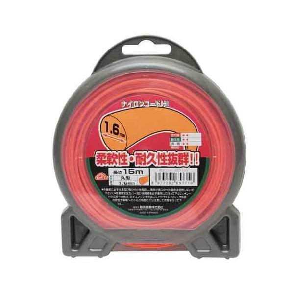 【用途】刈払機用ナイロンコード。【機能・特徴】小石の多いところ・フェンス、塀の際・雑草、植木の周囲での作業に最適です。【仕様】●丸型。●直径:1.6mm。●長さ:15m。園芸機器 刈払機 ナイロンコード