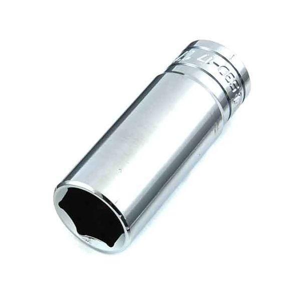 【用途】六角ボルト、ナットの締め緩め作業。【機能・特徴】ボルトが飛びだしている場合や、奥まった場所での作業に適しています。【仕様】●差込角:9.5mm(3/8インチ)。●二面幅:17mm。●対象ネジ:六角ボルト、ナット。●ANSI、DIN規格適合。●クロームバナジウム鋼。【注意事項ほか】ボルト、ナットはサイズに合ったものをご使用下さい。ソケットはボルト、ナットに対して斜め掛けや浅掛けをしないよう、奥まで完全に差し込んでご使用下さい。作業工具 ソケット 3/8ソケット