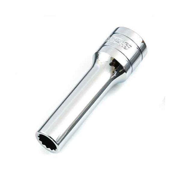 【用途】六角ボルト、ナットの締め緩め作業。【機能・特徴】ボルトが飛びだしている場合や、奥まった場所での作業に適しています。【仕様】●差込角:12.7mm(1/2インチ)。●二面幅:10mm。●対象ネジ:六角ボルト、ナット。●ANSI、DIN規格適合。●クロームバナジウム鋼。【注意事項ほか】ボルト、ナットはサイズに合ったものをご使用下さい。ソケットはボルト、ナットに対して斜め掛けや浅掛けをしないよう、奥まで完全に差し込んでご使用下さい。作業工具 ソケット 1/2ソケット