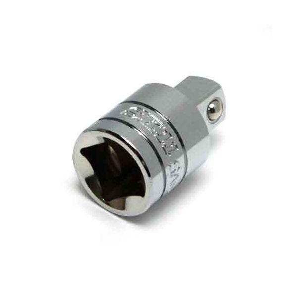 【用途】差込角の異なるソケットとハンドルの接続。【機能・特徴】異なる差込角のソケットとハンドルを接続出来ます。【仕様】●差込角:12.7mm(1/2インチ)→9.5mm(3/8インチ)。●クロームバナジウム鋼。【注意事項ほか】インパクトレンチ等の動力工具では使用しないで下さい。角ドライブは根元まで完全に差し込んで下さい。ハンマー等で叩いて衝撃を与えないで下さい。作業工具 ソケット アクセサリー