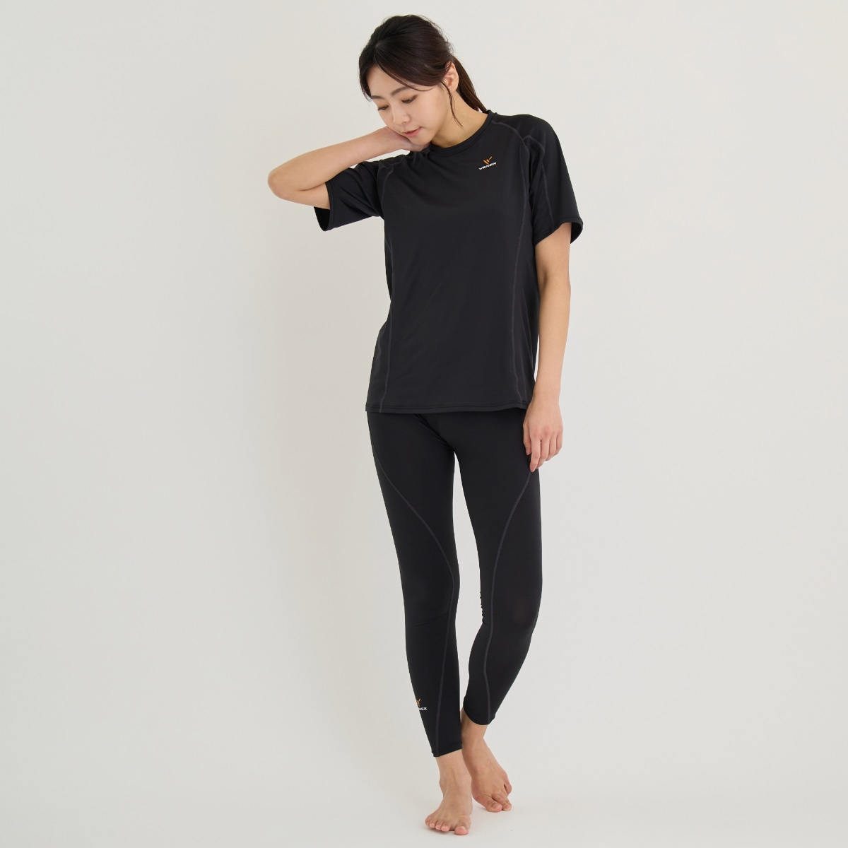 ウェアそのものが圧着タイプ(コンプレッションウェア)ではないので、体の締め付けもなく、“ゆるフィット”で、心地よく着用できます。