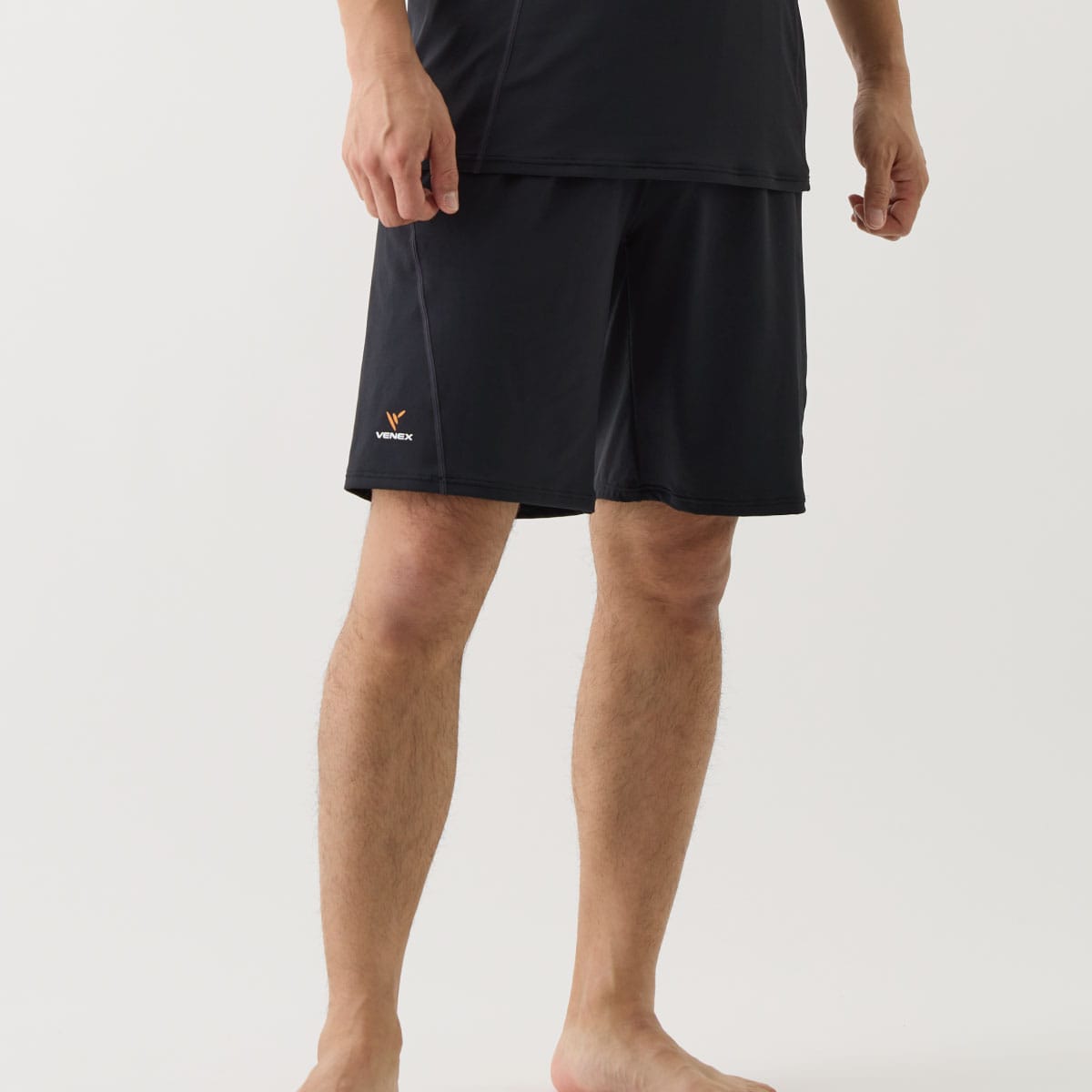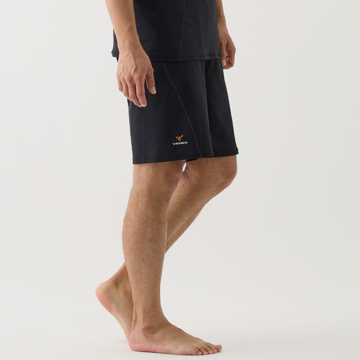 就寝時はもちろん、移動時やトレーニング後も心地よく過ごせるひざ丈のハーフパンツ。