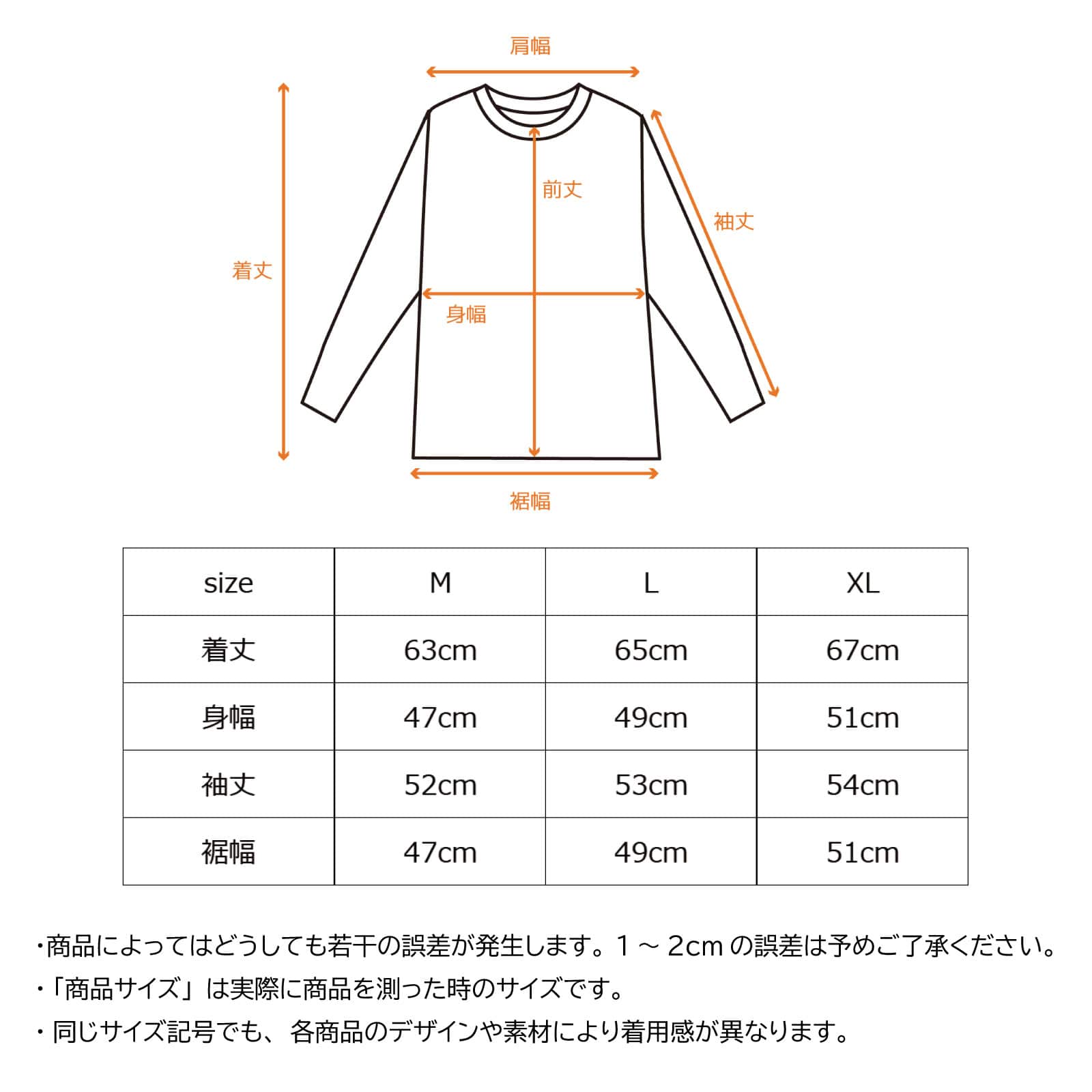・商品によってはどうしても若干の誤差が発生します。1~2cmの誤差は予めご了承ください。