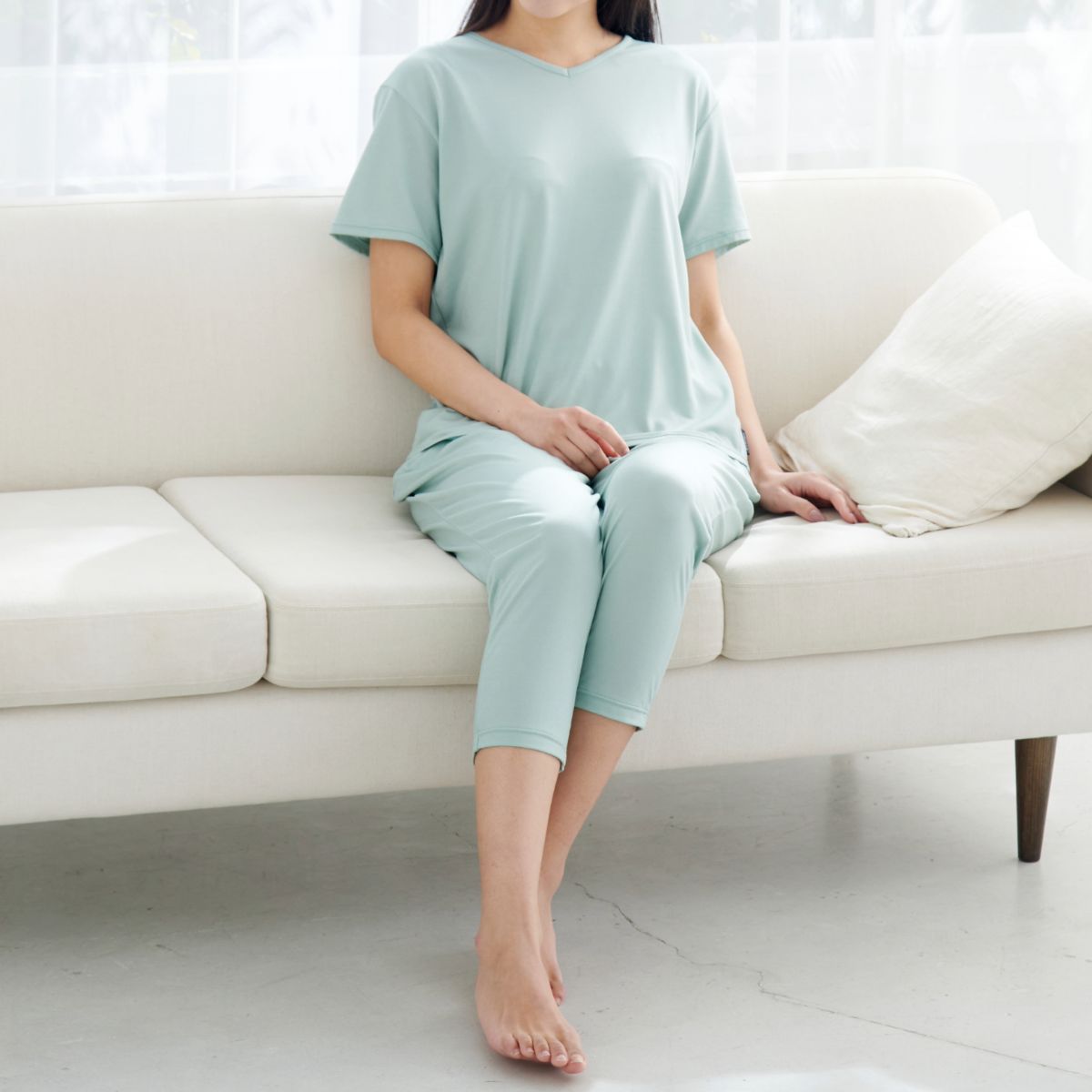 ベネクス リカバリーウェア コンフォートクール レディース 上下セット ショートスリーブ 8分丈テーパードパンツ ミント