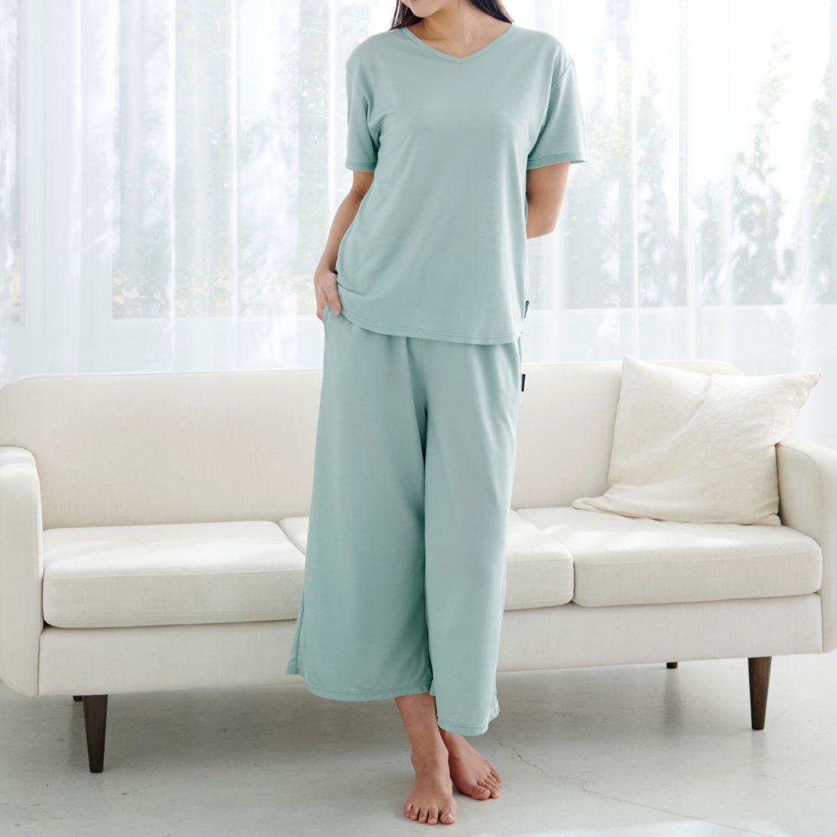 ベネクス リカバリーウェア コンフォートクール レディース 上下セット ショートスリーブ ガウチョパンツ ミント