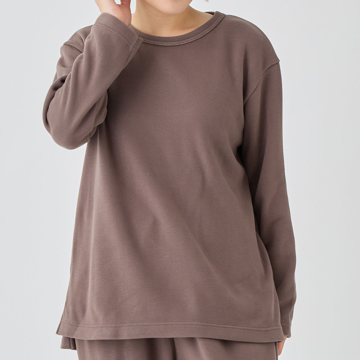 セーターのように優しく体を包み、ほどよいゆとりとドロップショルダーのリラックスシルエット。