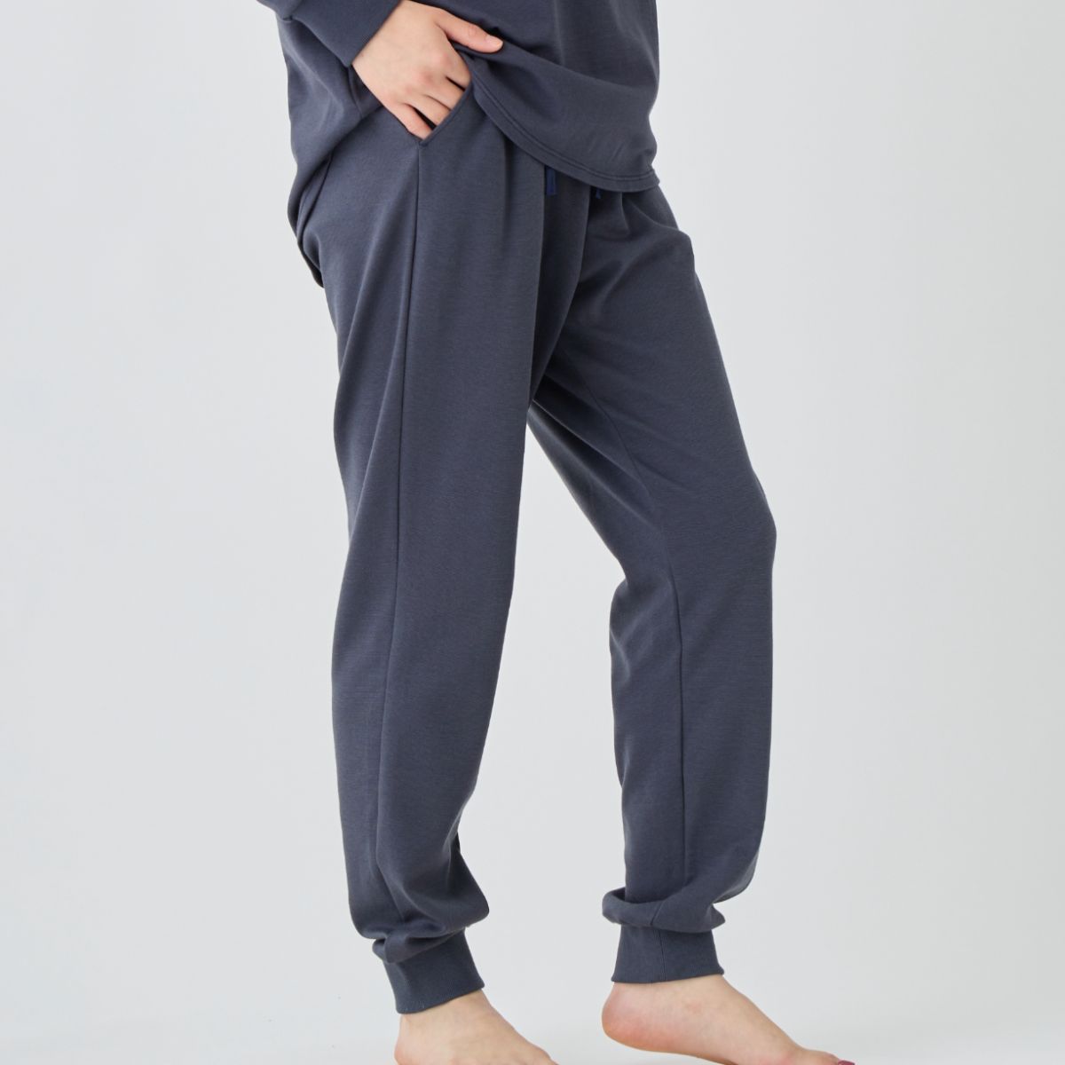 ゆったりとした腰回りなのに、綺麗に見えるスッキリシルエット。ウエストは紐で調節でき、サイドにはポケットが付いたジョガーパンツ。 裾口のリブがあたたかさをアップしてくれます。