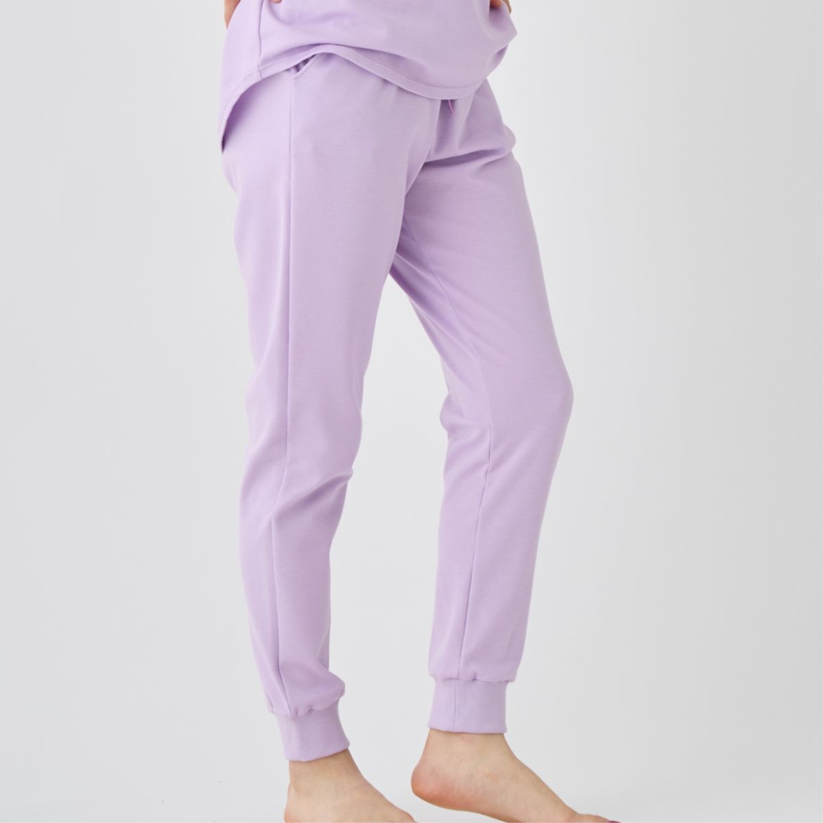 ゆったりとした腰回りなのに、綺麗に見えるスッキリシルエット。ウエストは紐で調節でき、サイドにはポケットが付いたジョガーパンツ。 裾口のリブがあたたかさをアップしてくれます。