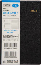 ビジネス手帳 1(黒)手帳判ウィークリー 2024年1月始まり No.47/