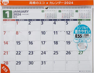 エコカレンダー壁掛 B3サイズ壁掛タイプ 2024年1月始まり E55/