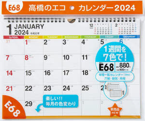 エコカレンダー壁掛 A4サイズ壁掛タイプ 2024年1月始まり E68/