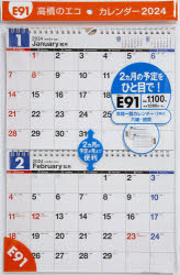 エコカレンダー壁掛(2ヵ月一覧) B5サイズ壁掛タイプ 2024年1月始まり E91/