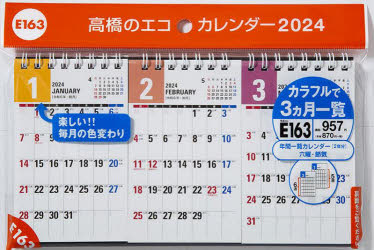 エコカレンダー卓上(3ヵ月一覧) B7変型サイズ卓上タイプ 2024年1月始まり E163/