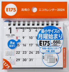 エコカレンダー卓上(月曜始まり) A7サイズ卓上タイプ 2024年1月始まり E175/