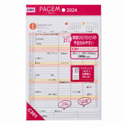ペイジェムファミリーカレンダー1 タテ型 A4サイズ(2024年1月始まり) C301/