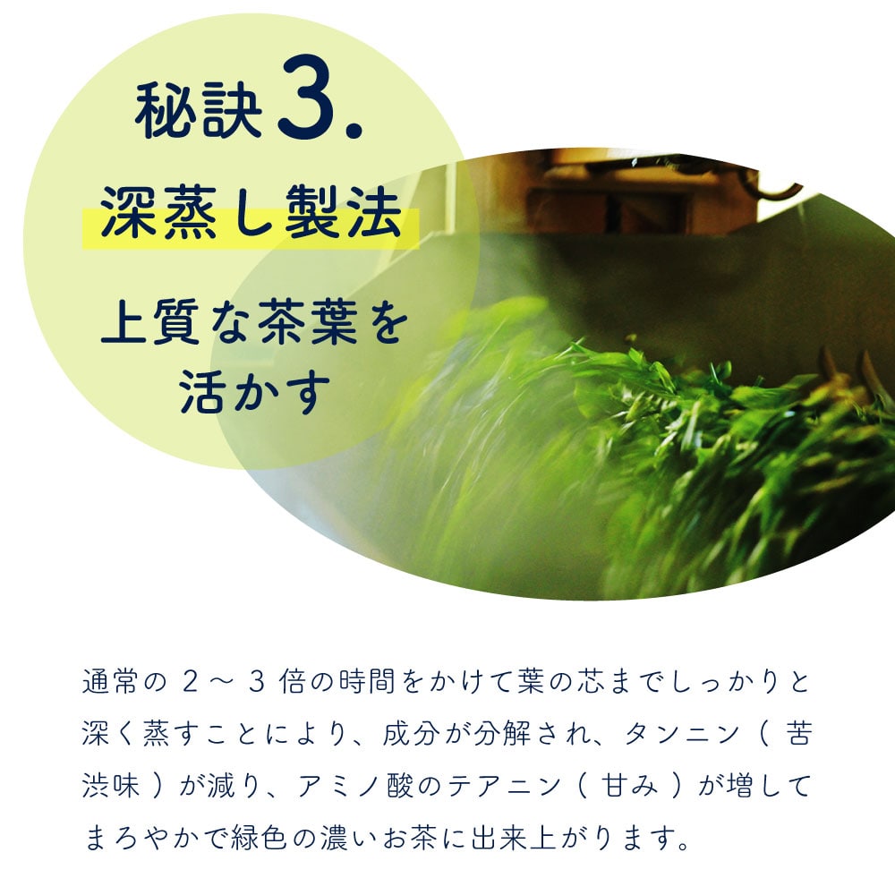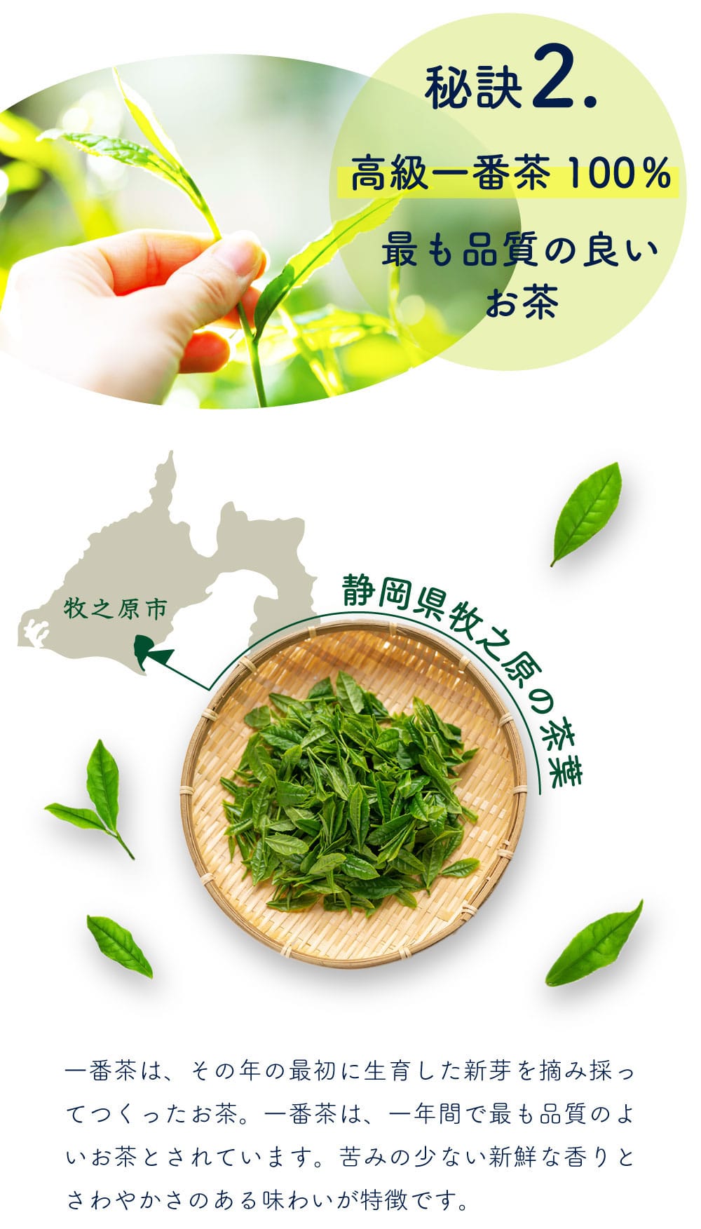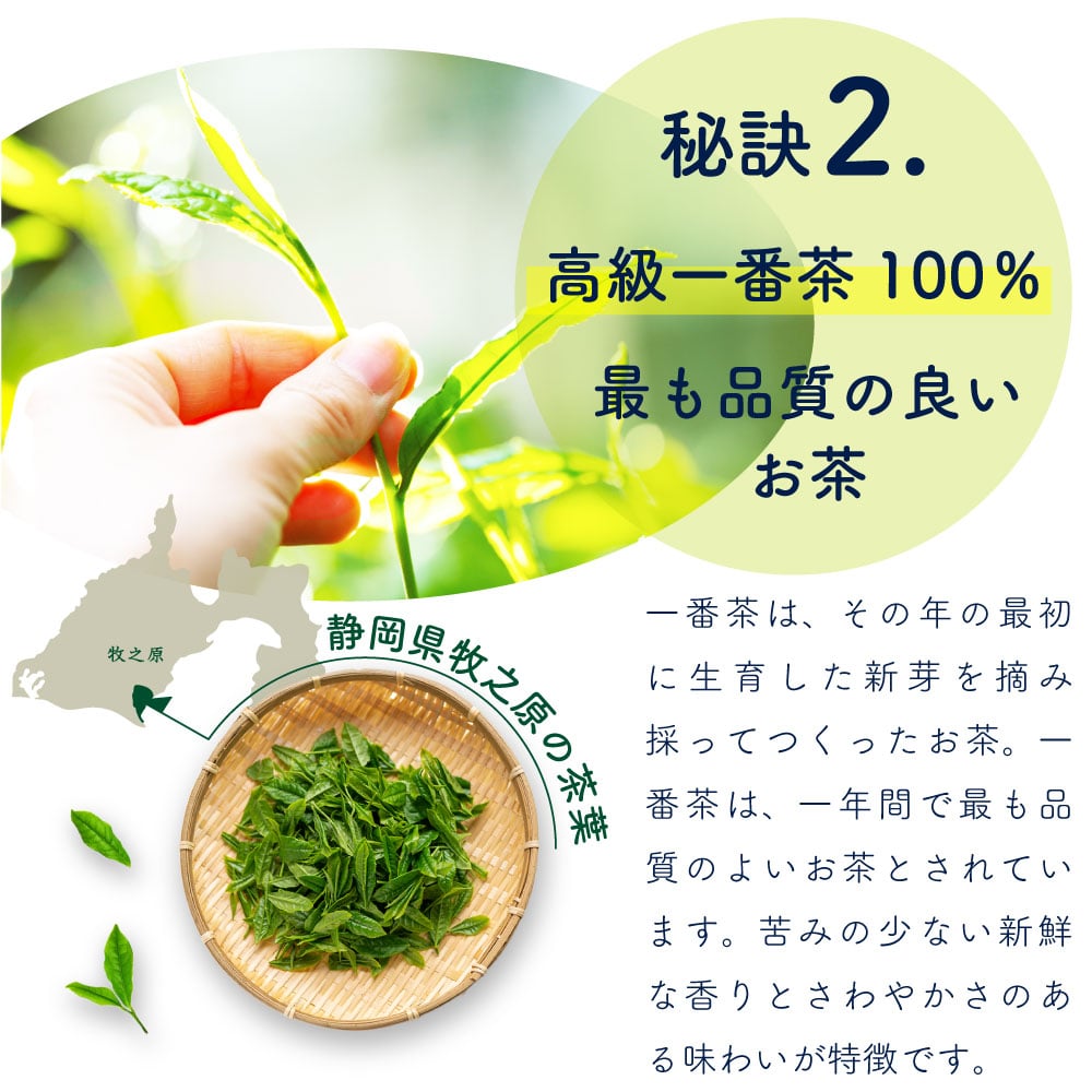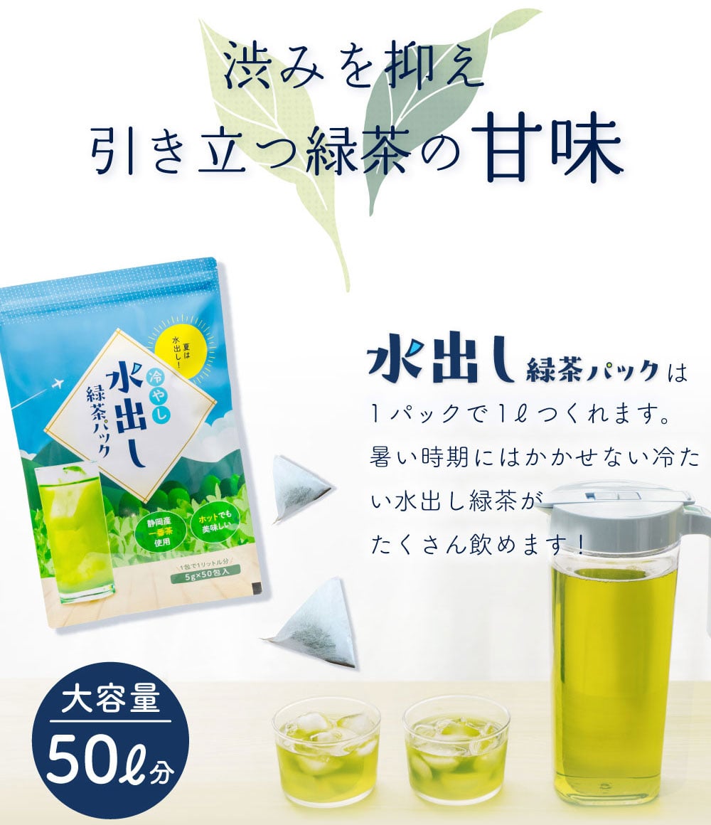 水出し茶は、甘み・旨み成分である「テアニン」を上手に引き出すことができます。つまり、水出し茶では緑茶成分の「おいしい」とこどりができ、苦味・渋味の陰に隠れてしまいがちな緑茶本来の甘味を味わえます。