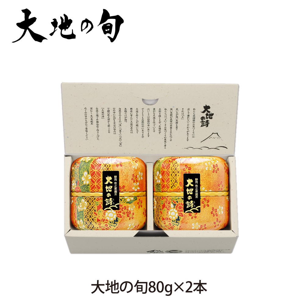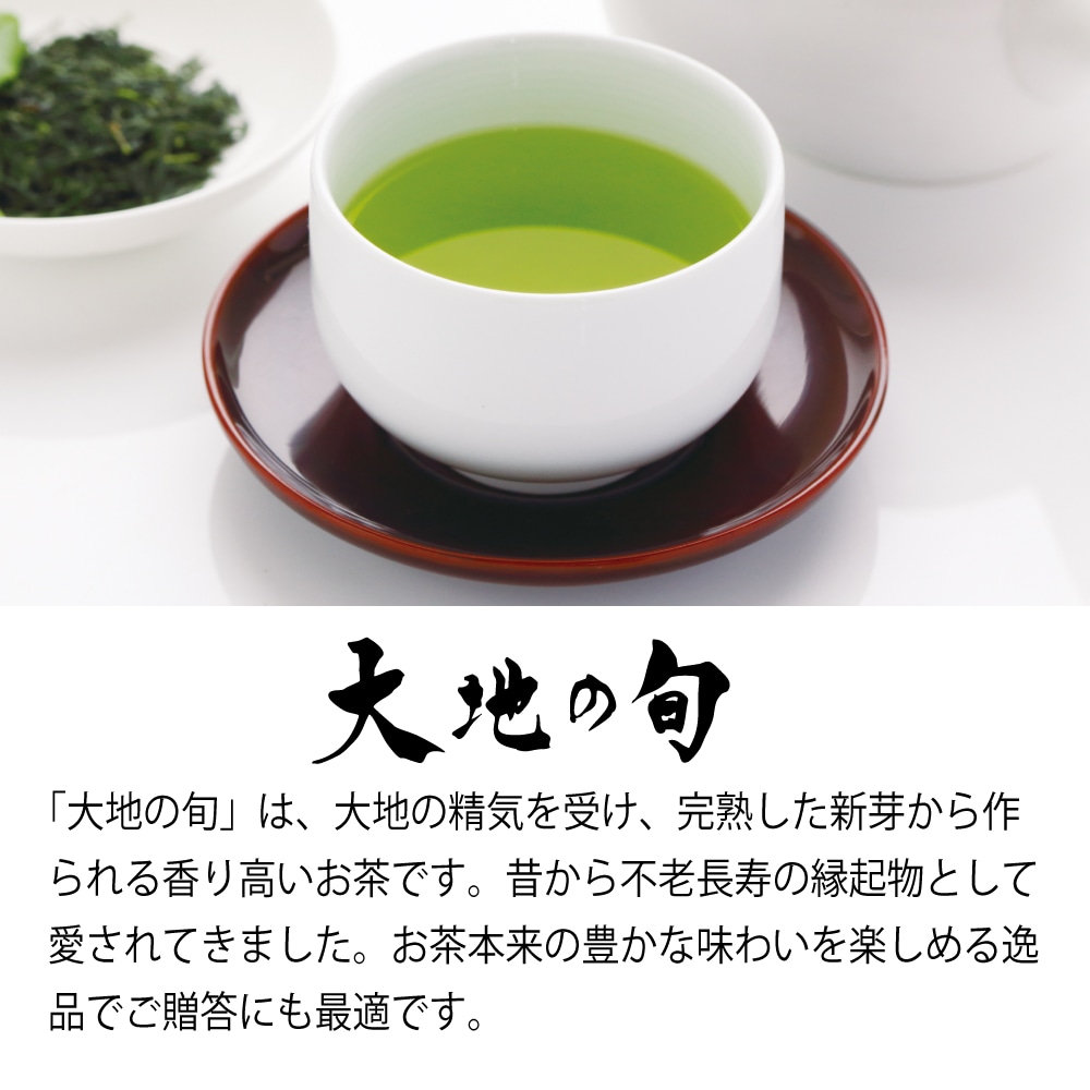 慶事用 大地の旬80g×2本箱入! 立春から数えて八十八日目が八十八夜です。この時期に摘み取られたお茶は 「旨味・渋味・香り・滋味・水色」 すべてに調和がとれています。 昔から「八十八夜のお茶は飲むと病気をしない、 長生きをする」といわれ縁起物として愛されてきました。 お茶のすべての要素が充実した味わいの 八十八夜摘みのお茶「大地の旬」をお楽しみ下さい。