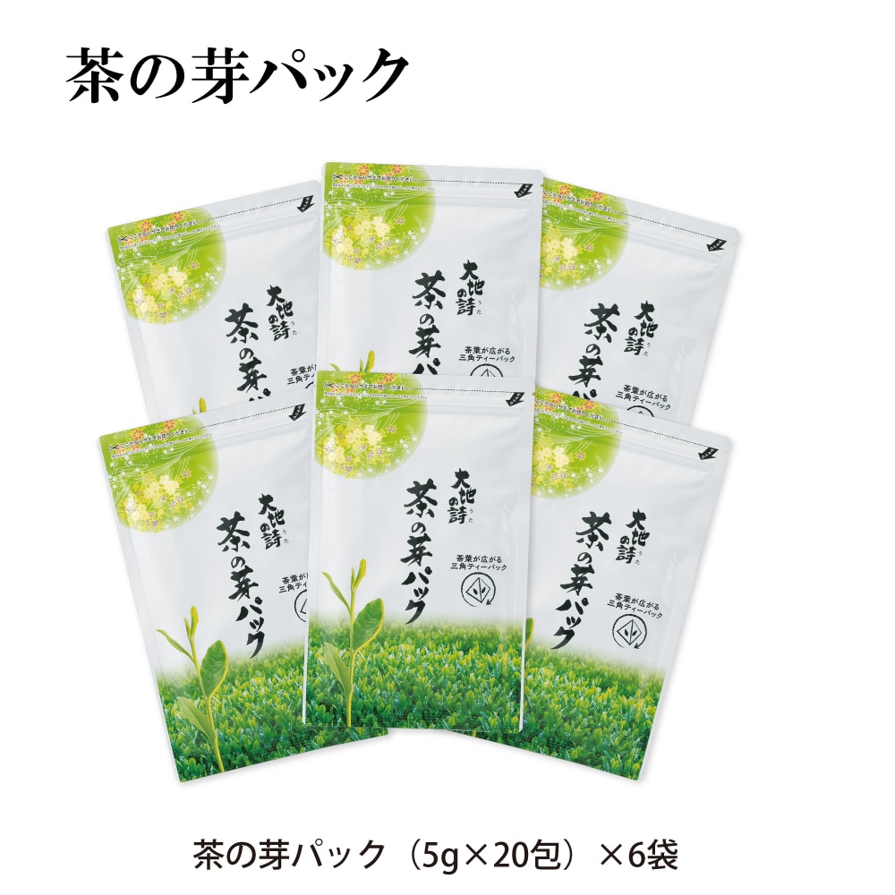 みんなで美味しい1リットル用!ティーパックの王様! お茶から、芽茶を取り出してパックしました。お茶の芽は、茶葉の中で1番おいしさや栄養分がつまっている場所。お茶のこの部分だけを集めているのですから、おいしさは格別です。色も深むし茶の美しいグリーン。味はまりやかでコクがあり、旨味が凝縮しています。 1パックで1リットル作れます。