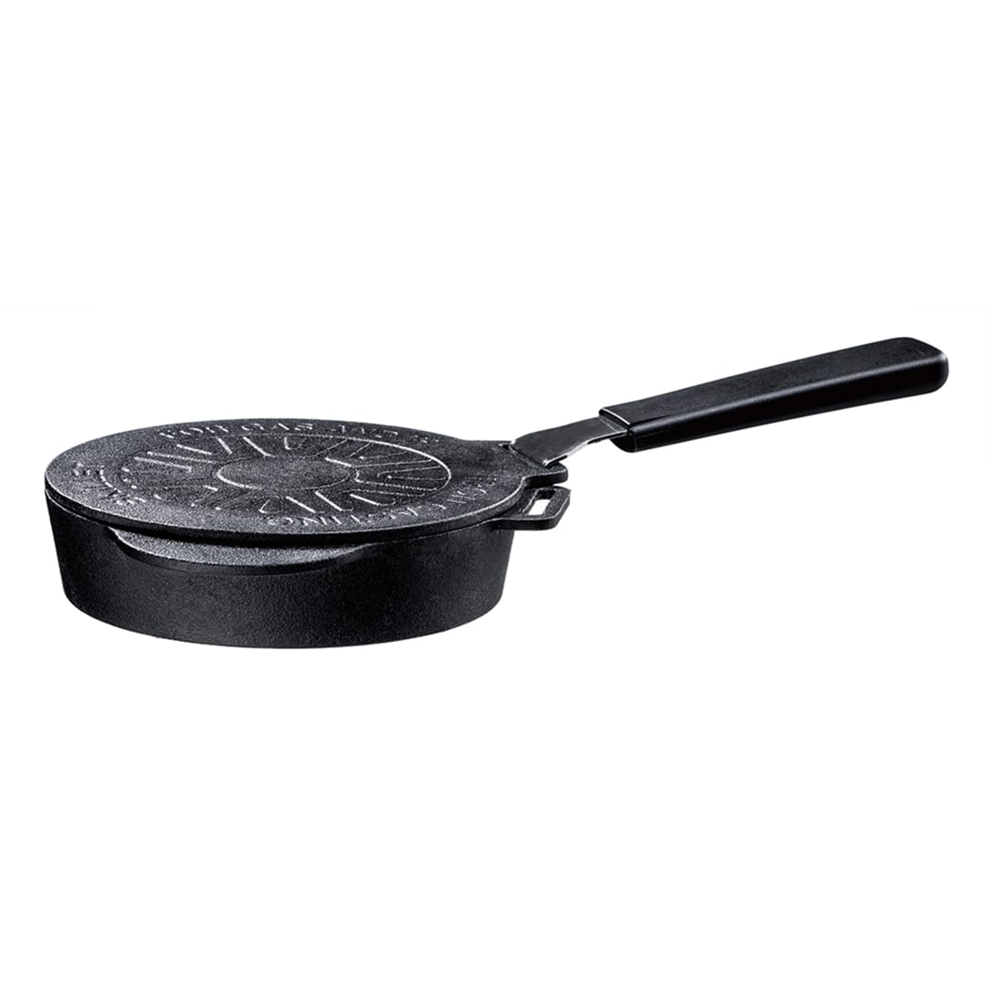 フタと本体の両方で調理ができる2WAY仕様のスキレット。鋳鉄製。着脱可能な取り出しハンドル付き。フタ付きのスキレットとして使用でき、フタ裏もフライパンとして使用できる。厚みと高い蓄熱性でステーキやハンバーグなどが美味しく仕上がる。容量は本体/約500ml、フタ/約300ml。秋田美佐子氏監修のレシピブック付(レシピ&説明書)。IH100V・200V、ガス火、電気プレート、ハロゲン、シーズなどの多様な熱源で使える。電子レンジは不可。