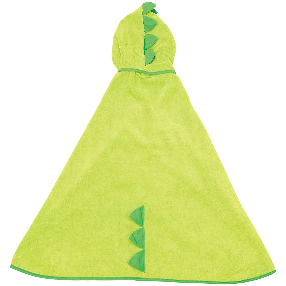 柔らかで肌触りのいいマイクロファイバー生地のバスポンチョ。被ると恐竜に変身できて可愛い。フード付きで体をすっぽり覆えるため、動き回るお子様の体も拭きやすい。お風呂上がりの湯冷め対策や水遊びの際の日焼け防止にも役立つ。スナップボタンで止め外しが簡単。マイクロファイバー生地は水分をすばやく吸収して、乾くのも速い。洗濯機で洗える。漂白剤、ベンジン、シンナー等は使用しない。