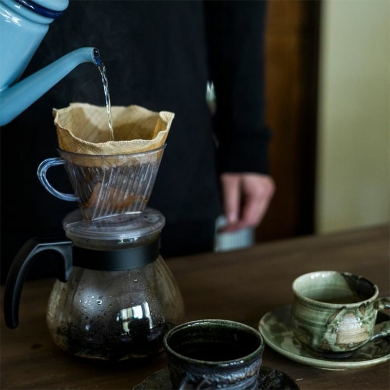 お客様の暮らしを彩る日本の工芸品を揃えた「鴻月」シリーズ。豆本来の味わいがダイレクトに楽しめる麻製のコーヒーフィルター。江戸時代から受け継がれている奈良の手織麻を使用。繰り返し使えるので環境にも経済的にも優しい。コーヒードリッパーは円錐タイプと3つ穴タイプのどちらにも対応。3つ穴タイプの場合は下を折り曲げてセットする。使う時は水で少し濡らしてから使用する。使用後は良くもみ洗いしてから形を整えて乾燥させる。