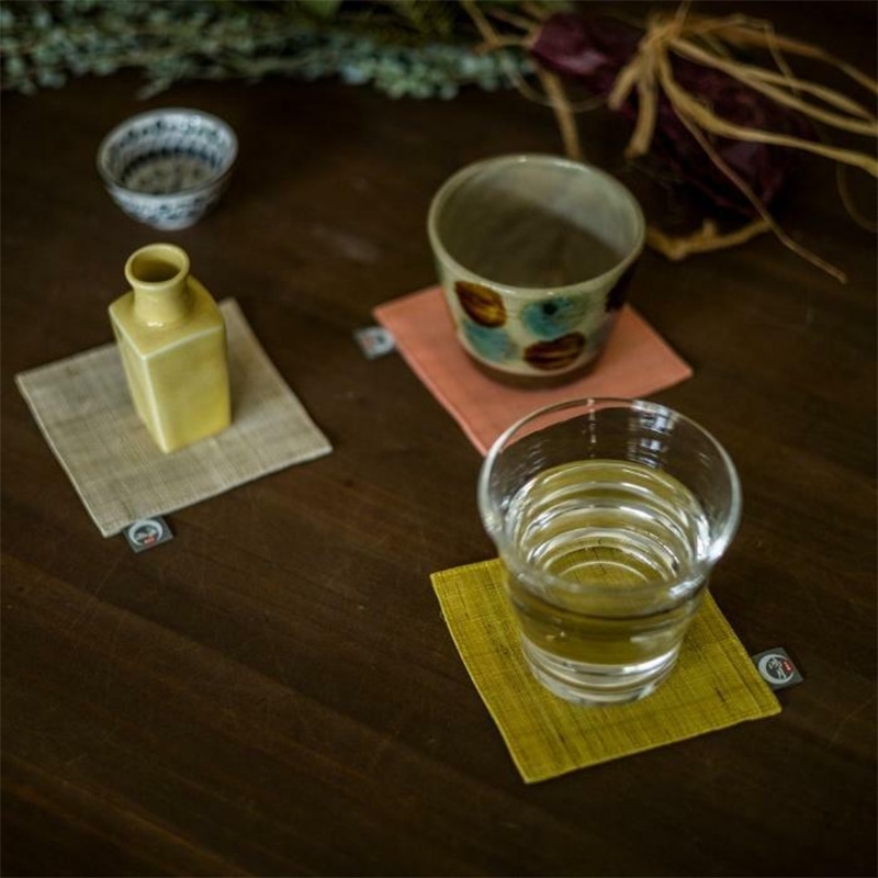 お客様の暮らしを彩る日本の工芸品を揃えた「鴻月」シリーズ。落ち着いた色合いが上品で使いやすい麻製のコースター。江戸時代から受け継がれている奈良の手織麻を使用。吸水性と速乾性に富んでいて使いやすい。汚れたら手洗い(押し洗い)で洗える。