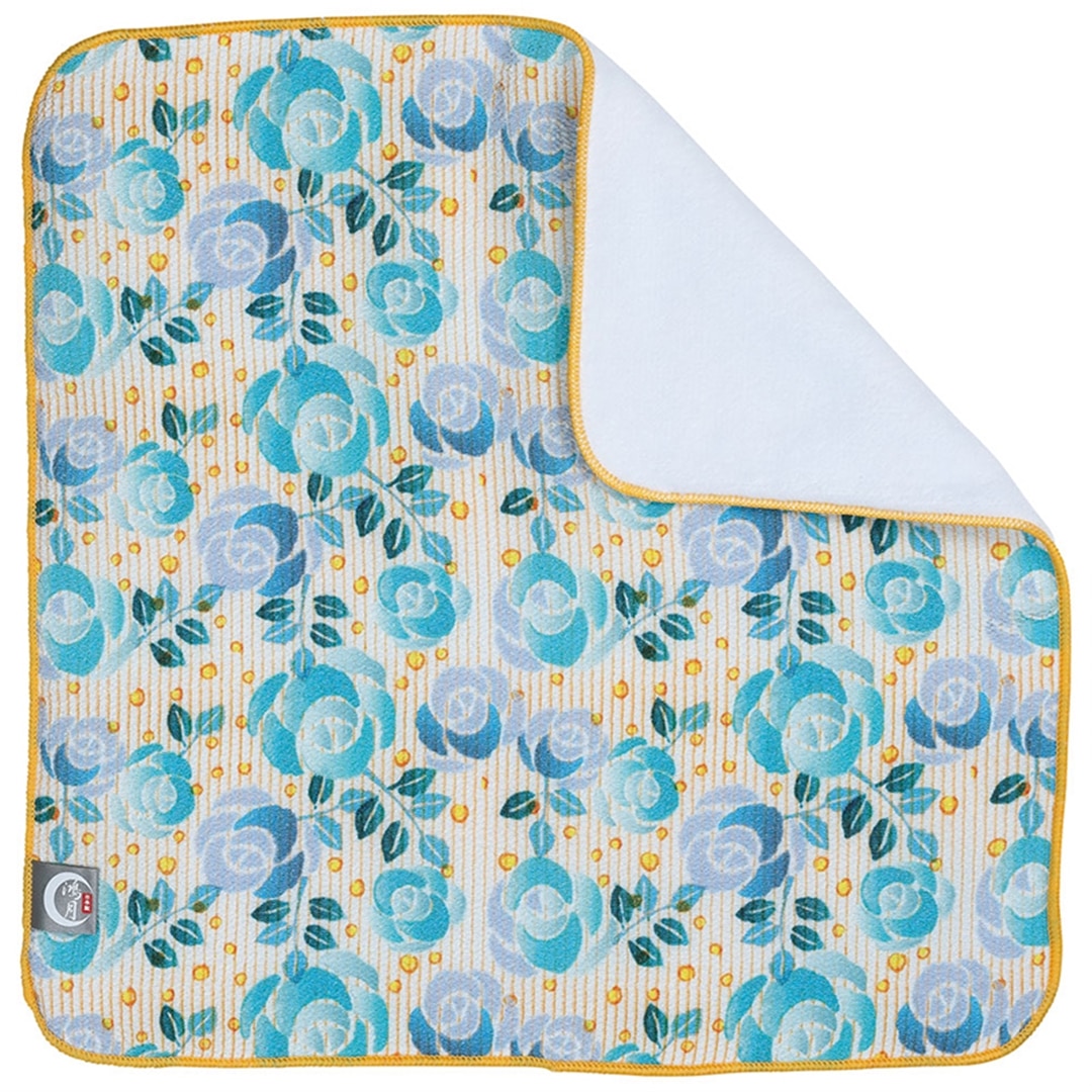 お客様の暮らしを彩る日本の工芸品を揃えた「鴻月」シリーズ。和テイストの生地で作られたタオルハンカチ。表面はちりめん生地で裏面はオル生地。和の質感が独特のちりめん生地に京友禅の技法を用いて製作。色落ちする恐れがあるので白い物と一緒に洗うのは避ける。漂白剤の使用は避ける。