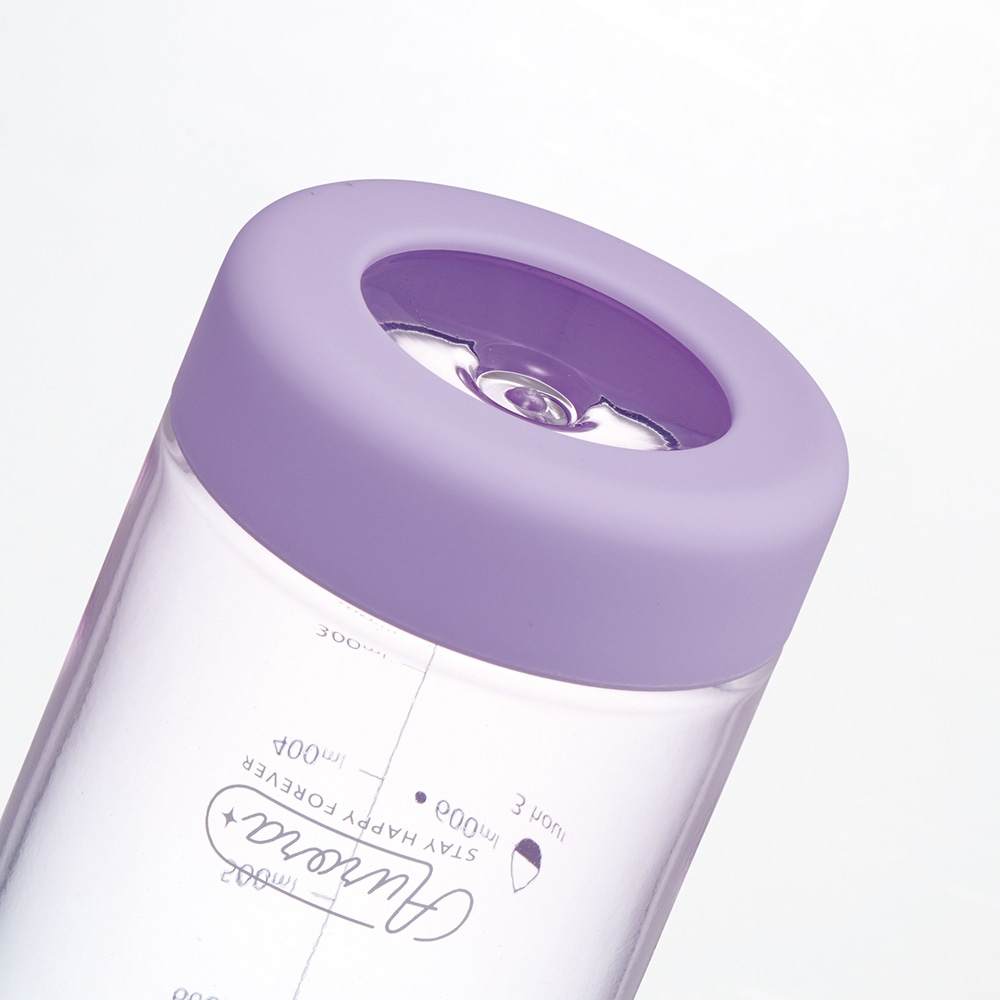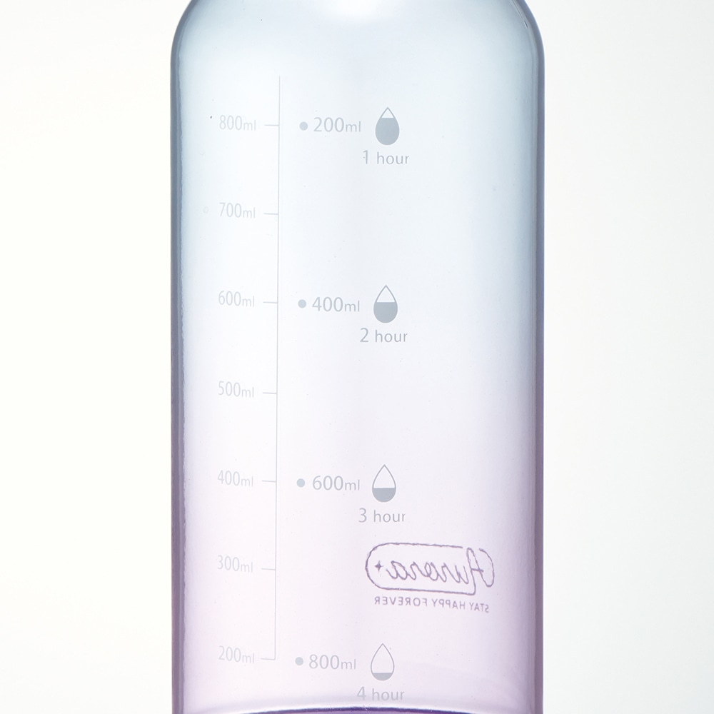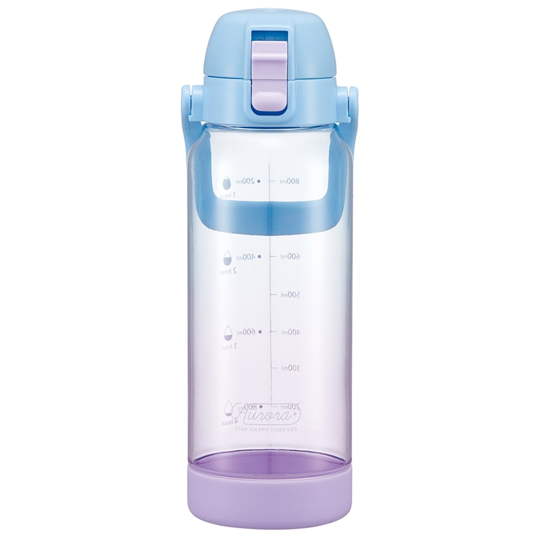 こまめな水分補給をサポートしてくれる目盛り付きのボトル。1回の給水分として200mlの目盛り付き。飲んだ量が一目で分かりやすい。時間を目安に効果的に水分補給ができる。本体には割れにくくて透明度の高い樹脂を使用。キャップを開けるとすぐ飲めるダイレクト飲み口。キャップはワンプッシュ式で簡単にオープン。飲む時にキャップが戻らないキャップロック設計。持ちやすいハンドル付き。すべりにくい底カバー付き。食洗機は使用不可。
