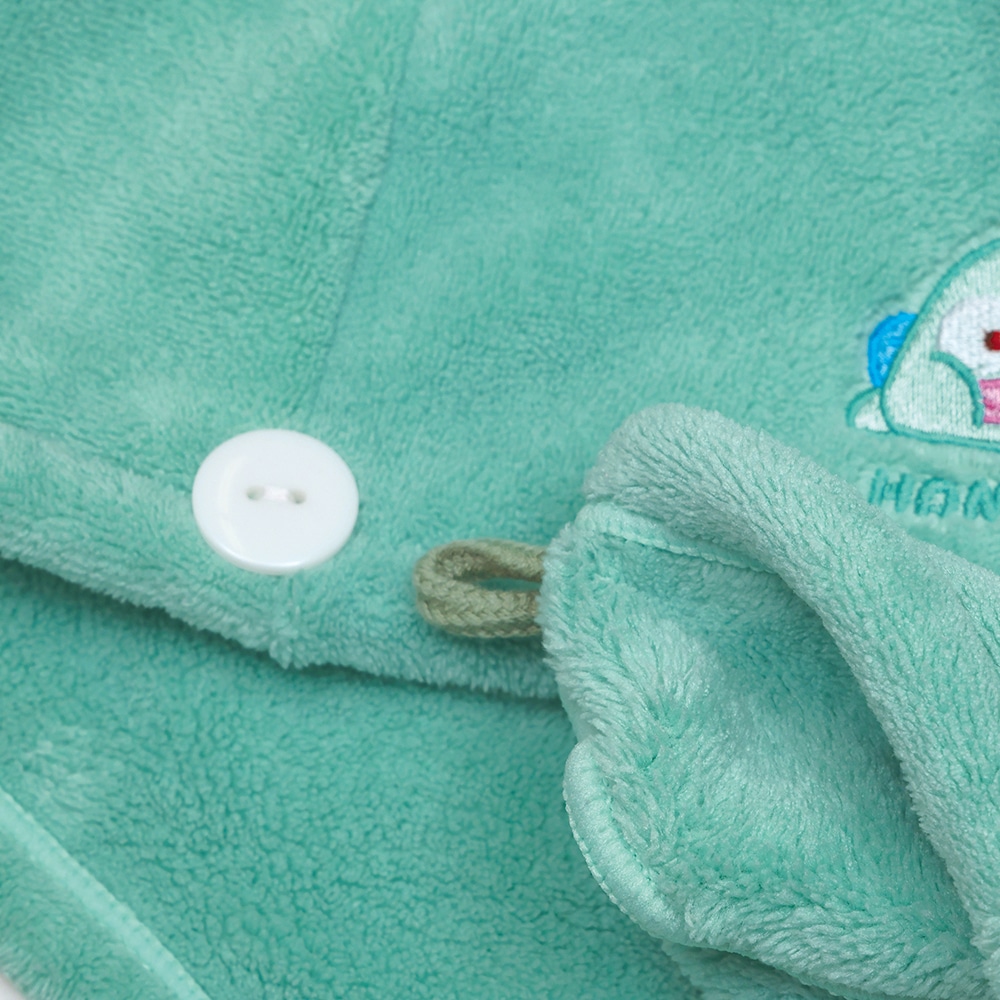 サウナの時に頭部と髪を熱から守るサウナターバン。サウナ時間を快適に楽しく過ごせるアイテム。毛先まですっぽり包める。ボタンに尖った方のループを掛けて固定できる。ボタンは2段階で調整しやすい。吸水速乾の素材で優しい肌触り。柄は刺繍。漂白剤、ベンジン、シンナー等は使用しない。