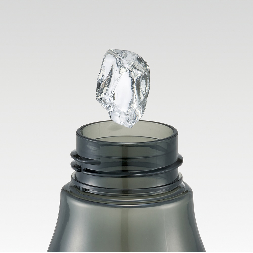 スタイリッシュな形状の樹脂製ブローボトル(水筒)。冷たい飲み物用か常温用として使える。お茶やお水、ジュース等を入れて持ち運びできる。フルーツや野菜などを入れて簡単でおいしいフレーバーウォーターも作れる。液体だけが飲める、濾し器付きの飲み口。氷が入れやすい広口タイプ。フレーバーウォーターがすぐにできる簡単レシピ付き。電子レンジと食洗機は使用不可。