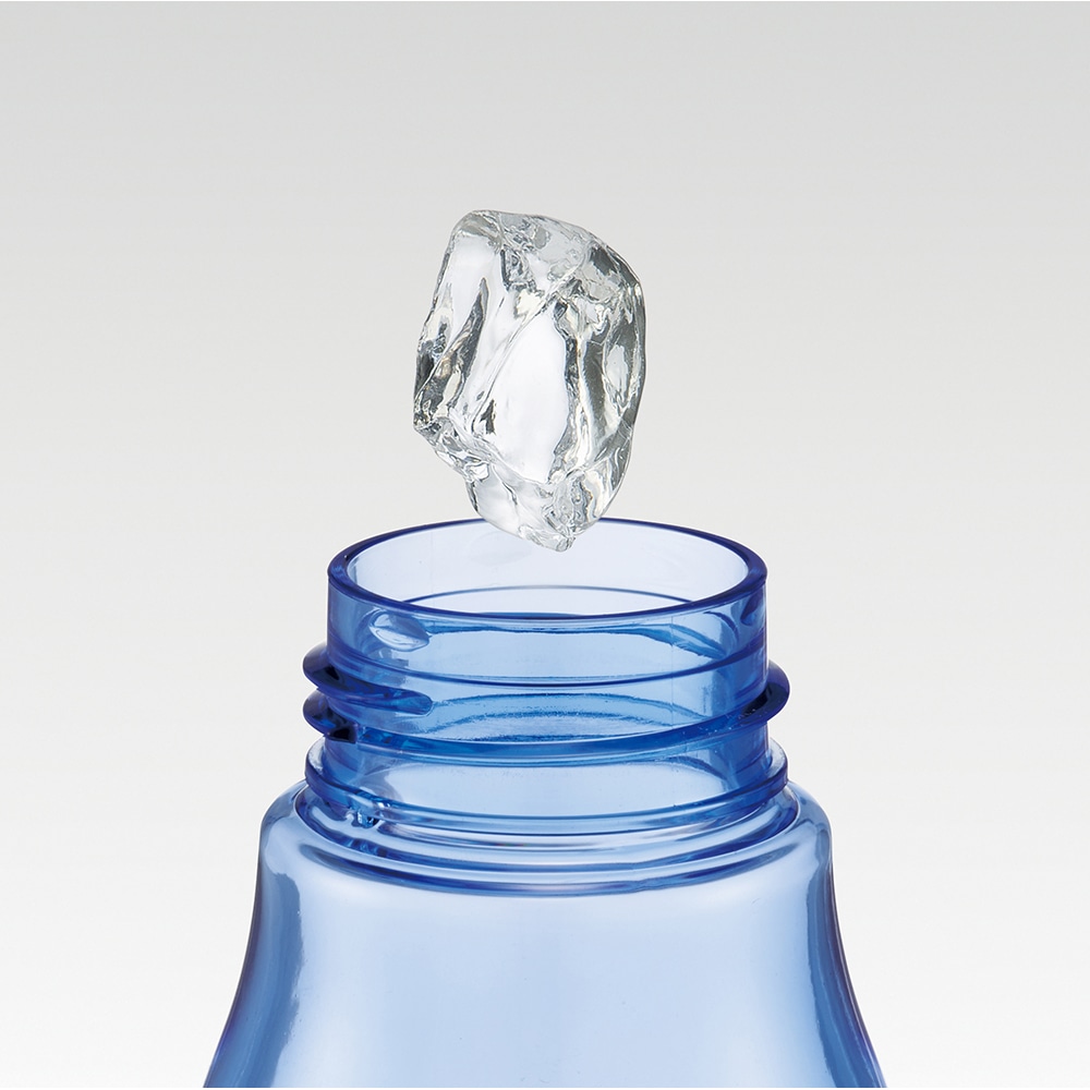 スタイリッシュな形状の樹脂製ブローボトル(水筒)。冷たい飲み物用か常温用として使える。お茶やお水、ジュース等を入れて持ち運びできる。フルーツや野菜などを入れて簡単でおいしいフレーバーウォーターも作れる。液体だけが飲める、濾し器付きの飲み口。氷が入れやすい広口タイプ。フレーバーウォーターがすぐにできる簡単レシピ付き。電子レンジと食洗機は使用不可。