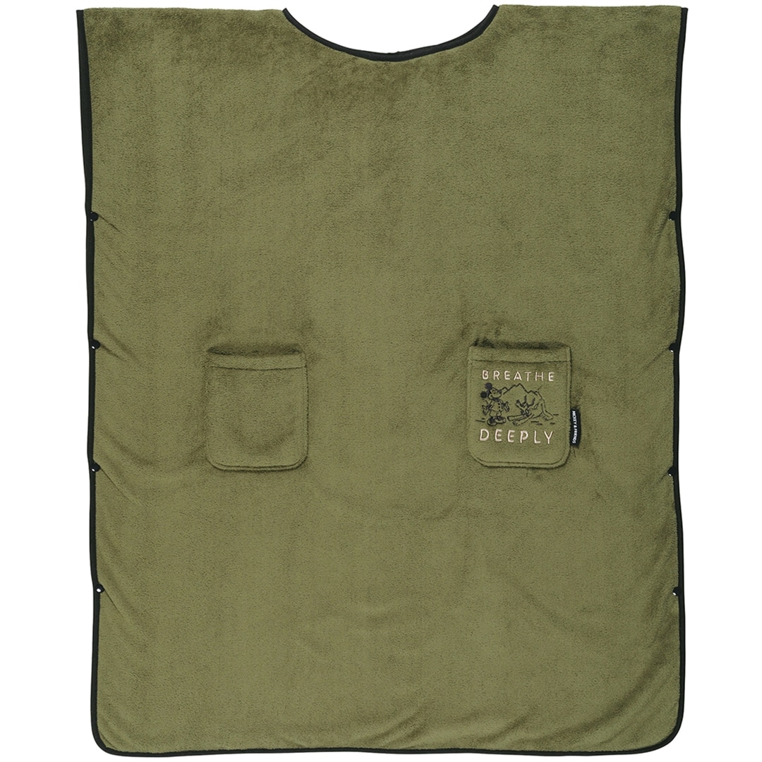 サウナなどの後にサッと着られるバスタオル。中央部の穴から頭を出してすぽっとかぶるだけ。汗や水分をさっと吸収して快適に過ごせる。サイドはスナップボタン仕様。吸水速乾の素材で優しい肌触り。ポケットが2つ付いていて、片方にはエンブレムの刺繍付き。サウナだけでなく、お風呂上がりや水泳などの後にもおすすめ。漂白剤、ベンジン、シンナー等は使用しない。