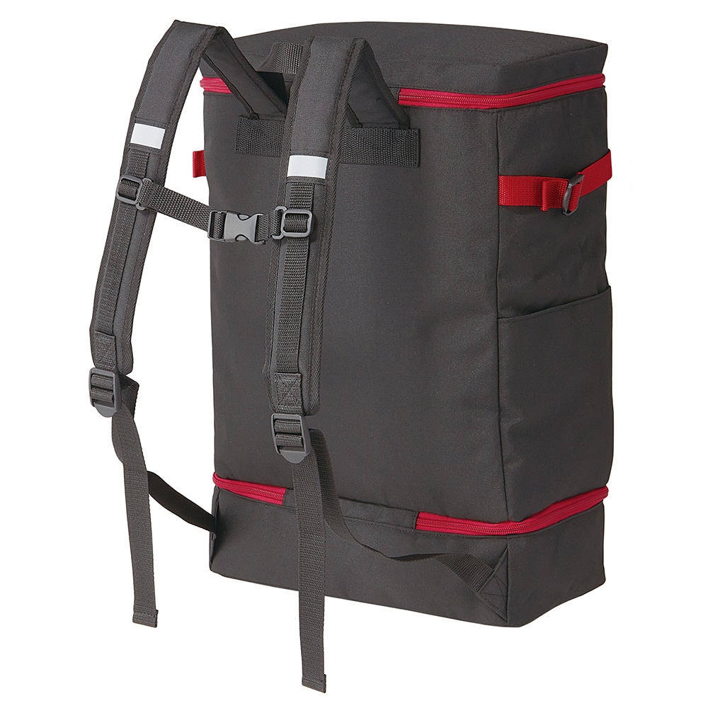 容量約27Lの角形リュックサック。荷室はB4サイズもすっぽり入る大きさ。フロントポケットにはA4の書類を収納できる。底部の底ポケットは靴や洗い物を入れておくのにぴったり。開閉はファスナー式。ショルダーハーネスは長さ調節可能。撥水機能もある。洗濯はできない。