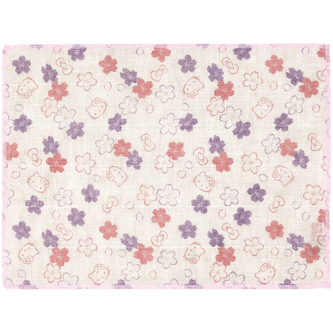お客様の暮らしを彩る日本の工芸品を揃えた「鴻月」シリーズ。奈良特産の麻の蚊帳生地を使用したふきん。キティちゃんと桜の花が可愛らしい「Hello Kitty(ハローキティ)」柄。通気性が良いかや織り生地で乾きが早い。麻は毛羽立ちにくいので食器やグラスを拭く際におすすめ。丈夫なので長期間使える。手洗いで洗える。