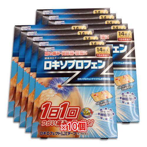 【第2類医薬品】★ロキエフェクトLXテープ 14枚入り×10個セット【大石膏盛堂】肩の痛み、腰痛、関節痛に1日1回でつらい痛みのもとに効く 24時間効果を持続 ロキソプロフェン テープ剤 ロキソニンジェネリック シップ 湿布