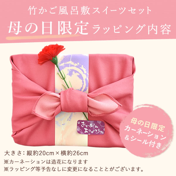 ○竹かご&風呂敷スイーツセット+豪華ブーケ付き… (造花のブーケとお菓子の詰め合わせセット)
