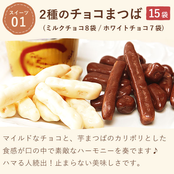さつまいも(国産)、植物性油脂、砂糖、乳糖、全粉乳、ココアバター、脱脂粉乳/乳化剤、香料、(一部に乳成分、大豆を含む)