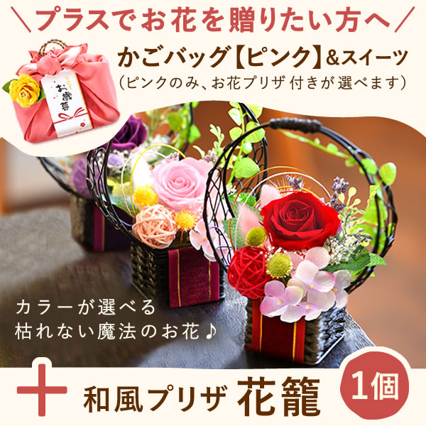 お歳暮 御歳暮 ギフト プレゼント スイーツ 送料無料 籠バッグ ピンク ギフト スイーツ お菓子 和菓子 干し芋 どら焼き 詰め合わせ セット