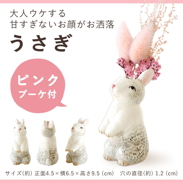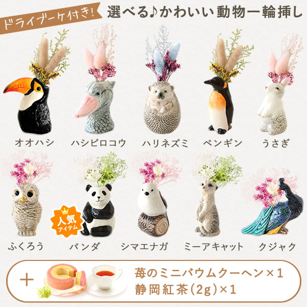 ドライブーケ付き 選べるかわいい動物一輪挿し陶器+スイーツセット