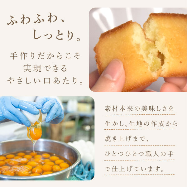 マーガリン(国内製造)、砂糖(国内製造)、卵白(国産)、さつまいも加工品(さつまいも、砂糖、還元水飴、その他)、小麦粉、アーモンドパウダー、乳等を主要原料とする食品、コーンスターチ/膨張剤、乳化剤、香料、pH調整剤、酸化防止剤(V.E、V.C)、着色料(クチナシ、アナトー)、(一部に小麦・卵・乳成分・アーモンド・大豆を含む)